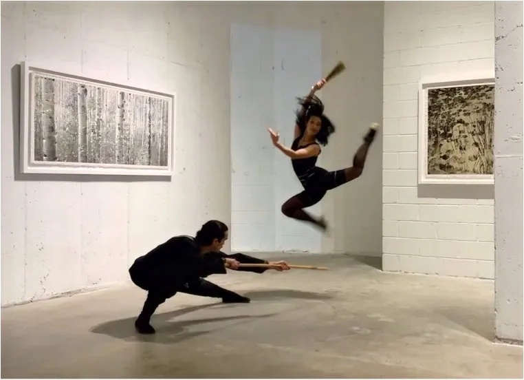 An immersive art experience based on Bill Claps' "Natural Abstractions IV" exhibition comes to life with music and dance. It blends martial arts, ballet, and contemporary dance, mirroring the exhibition's diverse landscapes, with movements inspired by nature's growth patterns across global settings, fostering harmony and balance.